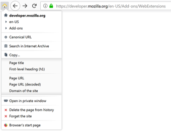 เมนูของส่วนขยายมีการแสดง URL ของหน้าเว็บปัจจุบันในรูปแบบลำดับชั้น ทำให้การนำทางไปยังหน้าหมายเหตุทำได้ง่าย ฟังก์ชันอื่น ๆ รวมถึงตัวเลือกในการลบสตริงคำค้น, แฮช, และ URL ที่เป็นมาตรฐาน พร้อมกับเครื่องมือในการค้นหาใน Internet Archive, คัดลอก URL, และจัดการประวัติการท่องเว็บ โปรดทราบว่าการมีอยู่ของฟีเจอร์ทั้งหมดใน Firefox สำหรับ Android ไม่ได้รับประกัน